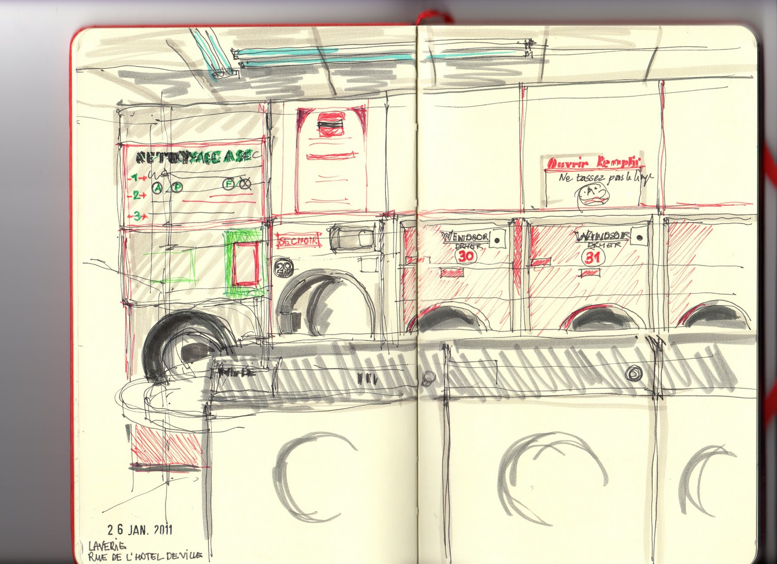 j'ai profité du thème de la semaine d'Urban Sketchers "Laundrymat" pour faire un petit tour dans une laverie pas très loin de chez moi.. Un bon moment de croquis, et plus inattendu, j'ai fait la rencontre de Francine, danseuse de Hip Hop en partance pour Londres, Miami...Etonnant!