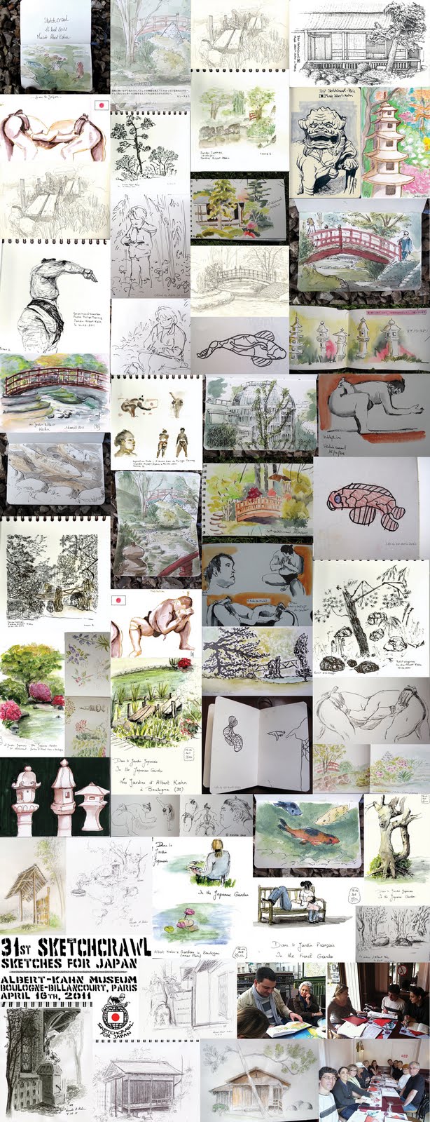 Le 31ème SketchCrawl a eu lieu au Musée Albert-Kahn à Boulogne-Billancourt samedi dernier. L'endroit à "croquer" n'a pas été choisi au hasard (merci Kim!) : l'idée de ce SketchCrawl était de rendre hommage au Japon et aux victimes du tremblement de terre et du tsunami.