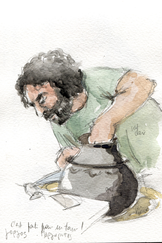 Mais ce que je préfère encore, c'est dessiner les petits vieux attablés au kafeneion, le potier à l'ouvrage et ce pope bavard au monastère d'Arkadi !